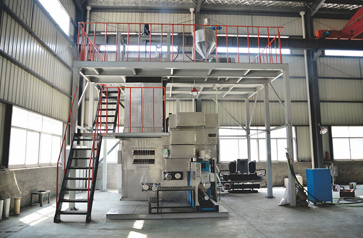 本設備主要采用溶劑溶解, 干噴濕紡法紡制芳綸1414纖維。 該纖維主要用于制作防彈衣,防彈頭盔,防刺防割服等等。生產工藝流程:設備包括原料溶解裝置, 雙螺桿擠出機,脫泡裝置,過濾器,漿液分配管道,計量泵及其傳動裝置,紡絲組件,水浴系統(tǒng),水洗堿洗牽伸機, 水洗機,烘干機,油輪上油裝置,熱定型機和卷繞機組成。